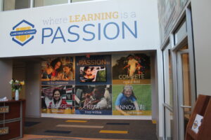 A well-branded campus and interior spaces sets your school apart from competitors by creating a memorable and captivating environment. It helps attract potential students, retain existing ones, and build a loyal “customer” base by leaving a positive impression.